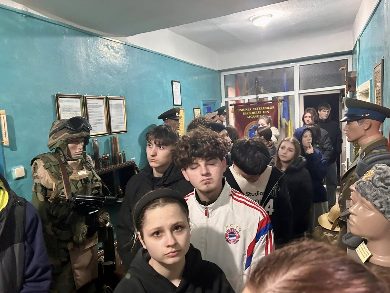 В рамках декады «Памяти и благодарности» ученики 11 класса вместе с заместителем директора по воспитательной работе Табанской Л.С. посетили музей военной истории. Экскурсию для ребят провёл Мариян Виктор Васильевич — ветеран войны в Афганистане, ветеран Приднестровского конфликта, кавалер ордена Credința Patriei, председатель Ассоциация ветеранов войны в Афганистане Фалештского района.