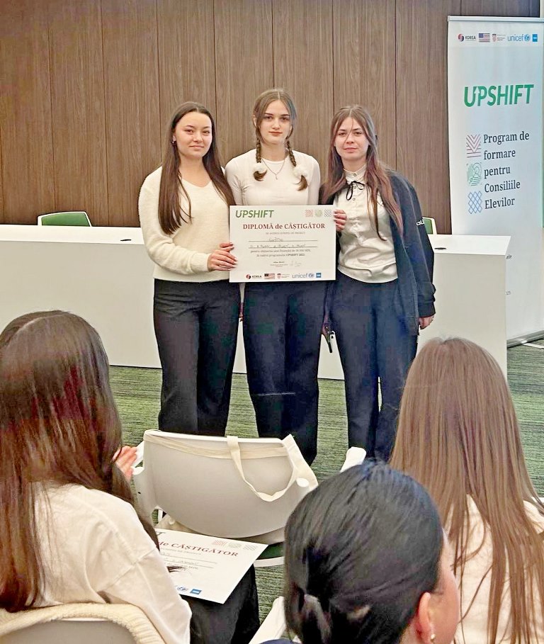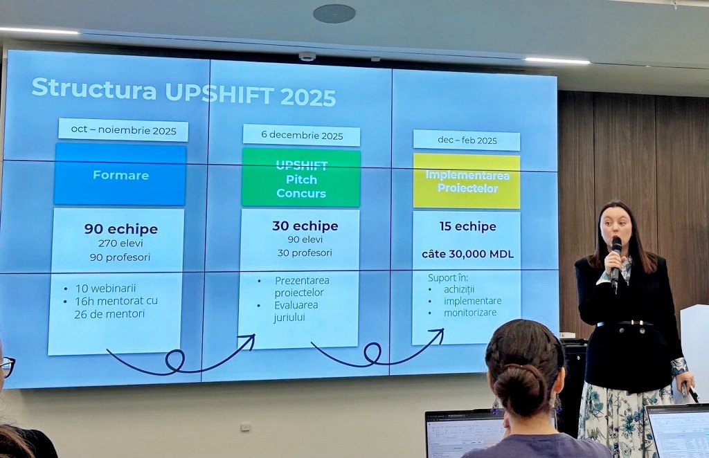 «Участвуйте в UPSHIFT 2025 и превратите свои идеи в реальные проекты, получив шанс на финансирование до 30 000 MDL для их реализации!» - так прозвучал призыв к действию. Кого оставит равнодушным такое заманчивое предложение? Только не Габриеллу Николаевну Дьячук – нашего неугомонного амбассадора множества экономических и предпринимательских инициатив. И вот образовалась маленькая, но опытная команда авторов успешных проектов, о которых мы уже не раз рассказывали в своих публикациях. Двенадцатиклассники Велиженко Никита, Мутелика Юлия, Ципович Анастасия, Былба Валентина под руководством своего наставника Г. Н. Дьячук приняли участие в 10ти вебинарах, провели общественный опрос, нашли проблему, в которую хотелось бы вложить потенциально заработанные деньги, и разработали проект «EcoRide», главной целью которого являлось строительство той самой вожделенной велопарковки, с которой мы начали свой рассказ.