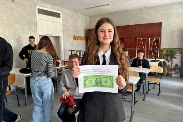 22 февраля американский народ будет отмечать 293-ю годовщину со дня рождения Джорджа Вашингтона – одного из отцов-основателей, первого всенародно избранного президента США. Ученики 9 «Б» класса по предложению преподавателя английского языка Ольги Валерьевны Лозняну решили отпраздновать это событие заранее - 19 февраля. «The Field of Wonders» («Поле Чудес») – так они назвали свой праздник. Там были все главные атрибуты старого доброго капитал-шоу – колоритный Леонид Якубович (Саша Калига) задавал вопросы тройкам взволнованных игроков, которые крутили самодельное картонное колесо фортуны, грациозные барышни открывали угаданные буквы, выносили победителям шкатулки и деньги. Самой весомой купюрой в этот день была свежераспечатанная на школьном принтере однодолларовая купюра, на которой, как известно, изображён сам Джордж Вашингтон. Все остальные нарисованные купюры с большим количеством нулей вызывали у игроков гораздо меньшую радость. Поскольку действие происходило на Поле Чудес, то сам именинник тоже предстал перед участниками игры. Ваня Котов в красном парике (другого не нашлось), зато на чистейшем английском языке приветствовал одноклассников от имени своего великого прототипа и пожелал успеха в игре. Пожелание сработало: игроки безошибочно угадали и родной город Вашингтона (Virginia), и звание, которым наградил его американский народ (Father of the Nation). Кроме того, во время игры девятиклассники делились друг с другом интересными фактами биографии первого президента США. В финале появился даже супер - приз - букет роз, который вместо Вашингтона получил супер-финалист игры. Чудесный день рождения получился – весёлый, непринуждённый и познавательный. А Неделя английского языка между тем набирает обороты!©