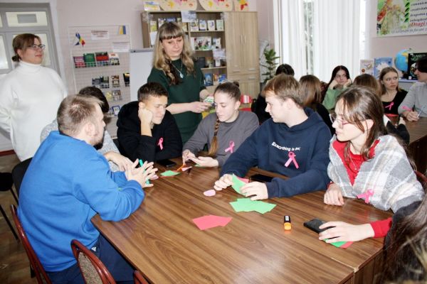 2 декабря, в понедельник, сотрудник Районной публичной библиотеки «Михай Эминеску» Ирина Владимировна Белоус пригласила группу наших учеников одиннадцатого и двенадцатого классов, чтобы поговорить с ними обо всех этих проблемах. Беседа, как всегда, прошла живо и интересно. Ребят специально не предупредили о теме очередной встречи, чтобы в форме игры они сами пришли к мысли о том, что СПИД – одна из самых страшных проблем, с которыми сегодня сталкивается молодёжь, и решить эту проблему можно только сообща, всем миром. Как решить? Повысить уровень всеобщей информированности и сознательного соблюдения не очень сложных правил профилактики и гигиены. Чтобы вспомнить эти правила, Ирина Владимировна предложила ребятам сыграть в интерактивную образовательную игру «Без табу», разработанную специалистами в области здравоохранения, социальной защиты, психологии по инициативе Фонда ООН в области народонаселения (ЮНФПА). Эта игра сочетает в себе развлечение с обучением и дает молодым людям возможность обсудить важные деликатные темы в открытой доступной форме. Надо сказать, что наши старшеклассники продемонстрировали достаточно высокий уровень информированности и интуиции, отвечая на вопросы игры, к радости присутствовавших на встрече педагогов – Л. С. Табанской, Т. И. Дробненьки, О. М. Савчук, С. Г. Бурдейной.