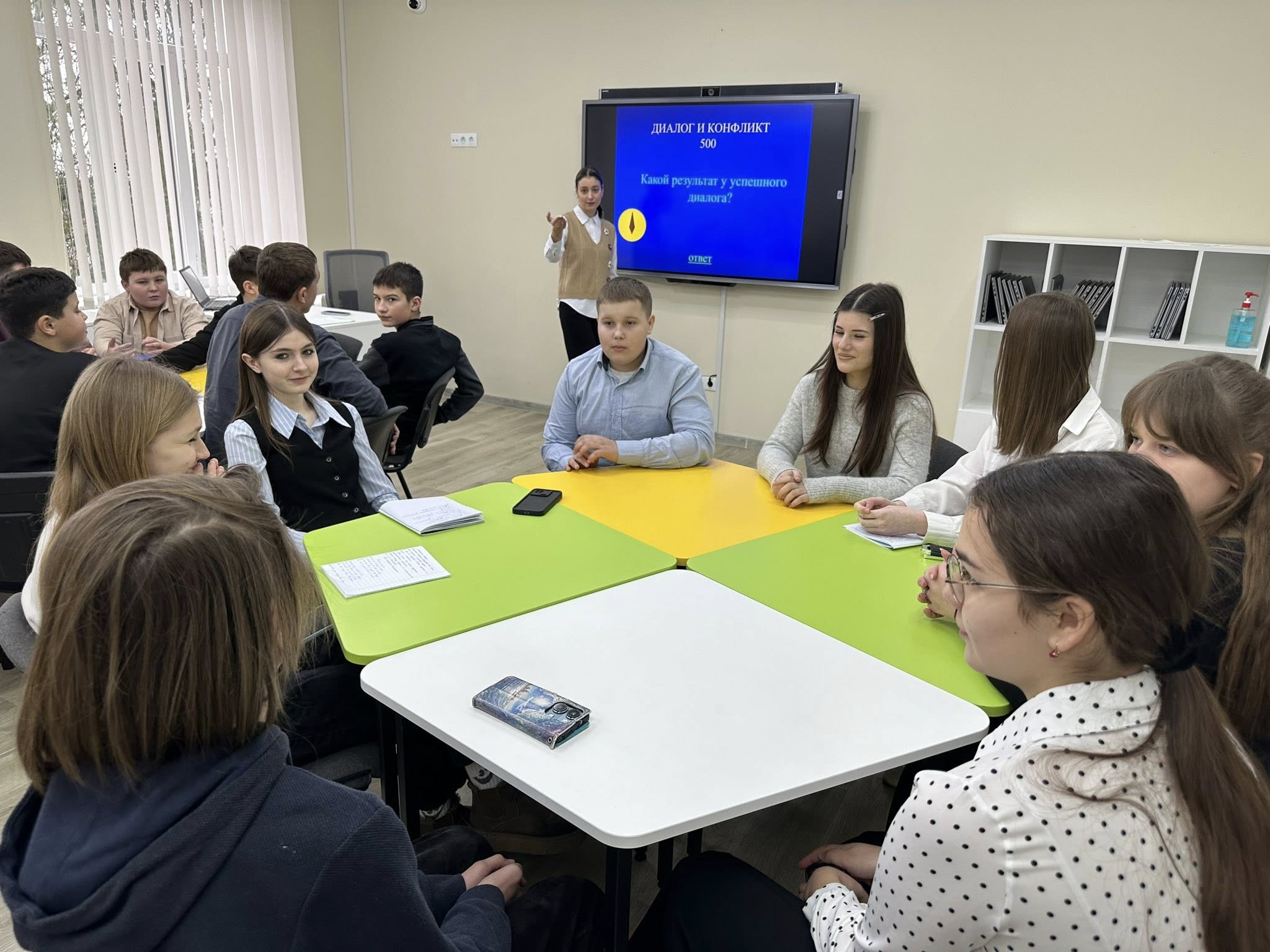 С первых минут урок задал особый тон: перед ребятами была не контрольная работа и не простое развлечение, а осмысленный диалог. Каждый вопрос становился приглашением к размышлению, каждая минута обсуждения — возможностью научиться слушать и уважать мнение другого. Учащиеся работали в командах, выбирали категории и баллы, совместно искали точные ответы, учились аргументировать свою позицию и принимать общее решение.
