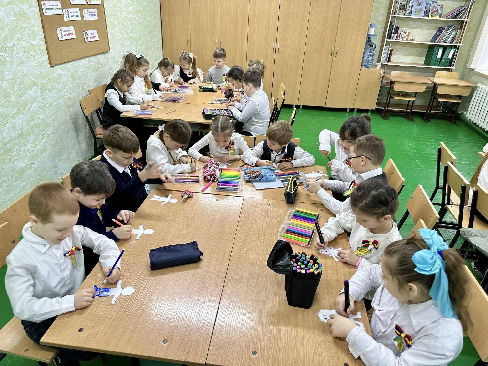 Творческое задание превратилось в настоящий ритуал единства: раскрашенные фигурки мальчиков и девочек выстроились вокруг карты Молдовы, образовав хору Дружбы — нежный символ сплочённости и общего дома. И вскоре эта хора сошла с доски в реальность. Под зажигательную молдавскую музыку дети вместе с учителем закружились в танце, ощущая радость общего круга и тепла рядом стоящих ладоней.