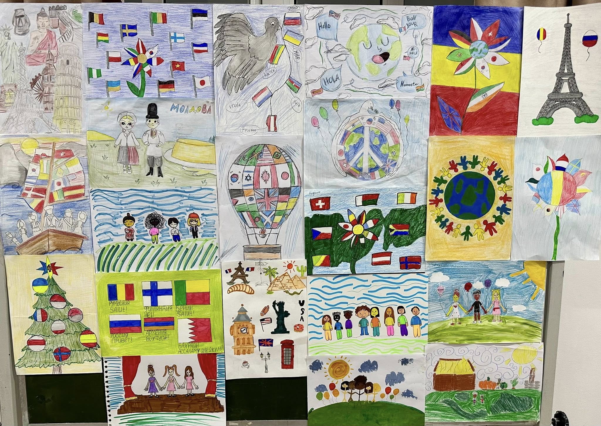 Важным продолжением межкультурного диалога стала художественная выставка, оформленная в холле лицея. Экспозиция «СТРАНЫ МИРА ГЛАЗАМИ ДЕТЕЙ», подготовленная преподавателем художественного воспитания Арнаут К.И. совместно с учащимися 5–7 классов, представила рисунки, посвящённые разным странам мира и их особенностям. В работах юных авторов нашли отражение архитектура, природа, национальные символы и характерные черты государств, показанные через призму детского восприятия.