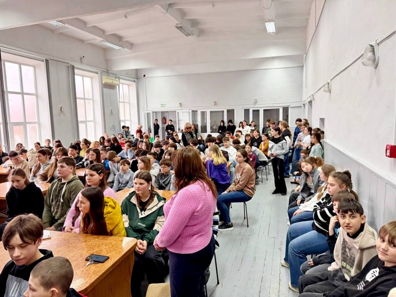 Преподаватель русского языка и литературы Валентина Васильевна ПЫКЭЛЭУ заранее попросила самых «пишущих» своих учеников из 7 «А» и 7 «Б» классов: «Напишите, пожалуйста, послание людям, которые с оружием в руках защищали целостность нашей с вами страны. Выразите им свою благодарность за возможность просыпаться под мирным небом и строить планы на будущее».