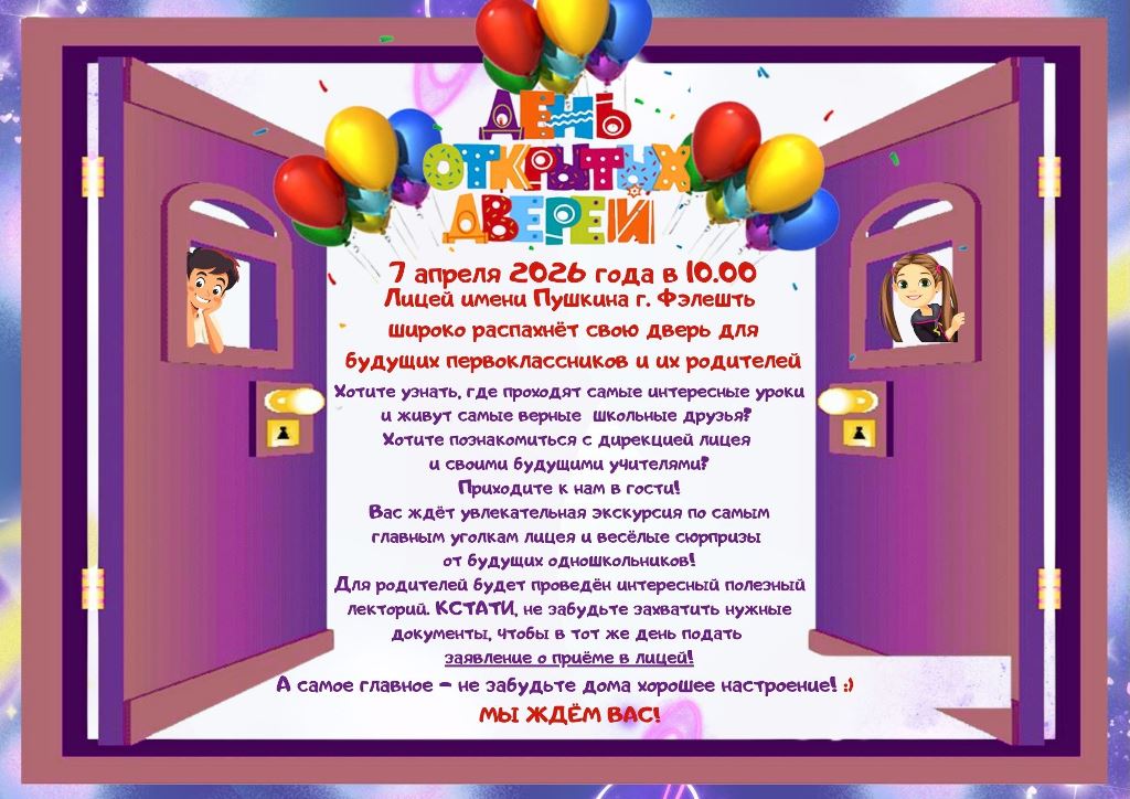 Объявление о мероприятии "День открытых дверей" для будущих первосклассников и их родителей