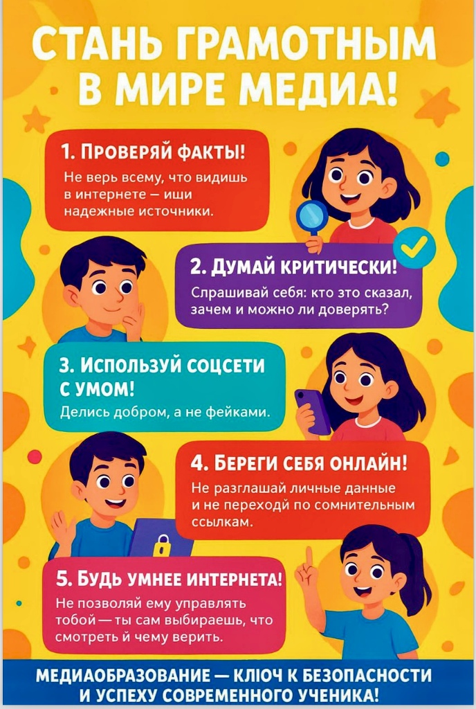 Наши ученики вошли в число победителей конкурса. Их работы отличались креативностью, продуманностью и умением критически анализировать информацию, превращая каждую идею в яркий визуальный проект. Победителей наградят рюкзаками, блокнотами и наушниками, что станет приятным признанием их усилий и таланта.
