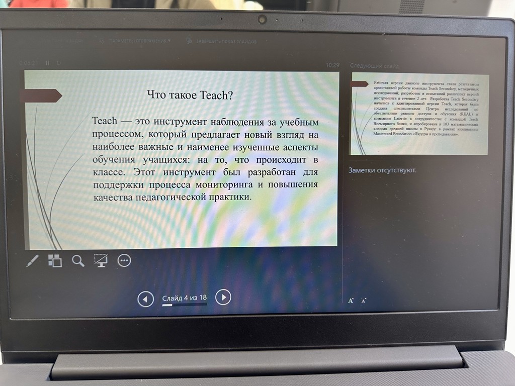 Пока учащиеся лицея наслаждаются осенними каникулами, их учителя продолжают учиться, открывая для себя новые возможности профессионального роста. 28 октября в лицее прошёл семинар на тему: «Эффективное преподавание и наблюдение за уроком с помощью инструмента Teach Secondary (Всемирный банк, 2023)».