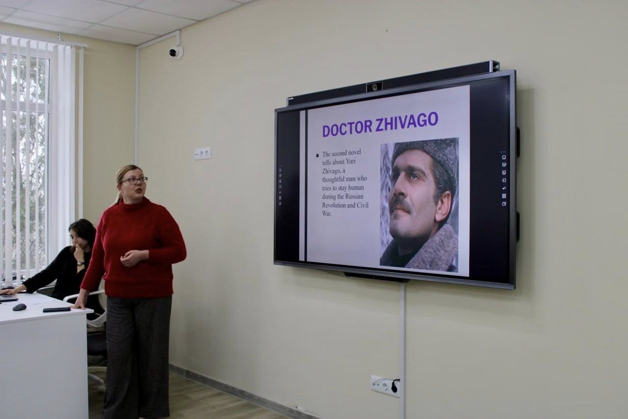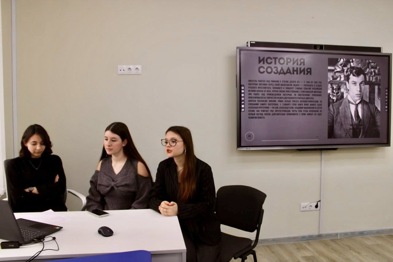 Учащиеся 12 «Б» и 10 классов представили свои творческие работы: презентации, видеорилы по экранизациям романов, анализ сюжета и образов главных героев. Музыкальным акцентом встречи стало исполнение Никитой Рураком вальса «Once Upon a December…», символизирующего крах старого мира и ностальгическое чувство утраты. Особую атмосферу создали декламации стихотворений Бориса Пастернака, наполнившие пространство искренними эмоциями и философским звучанием.
