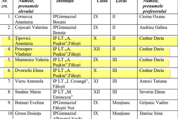 ДВОРСКИ Елену, ученицу 10 «Б» класса, с III местом