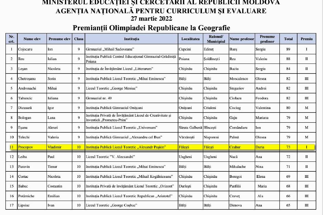 ПОЗДРАВЛЯЕМ ученицу 12 класса ТАБАНСКУЮ Варвару, ученика 11 класса МАТКОВСКИ Мариуса и их преподавателя ДЯЧУК Инну Константиновну с поощрением на республиканской олимпиаде по румынскому языку и литературе!