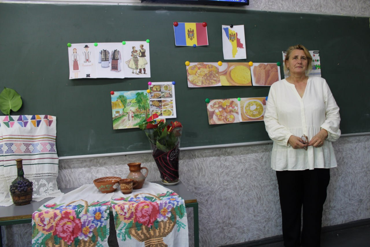 Особым украшением дня стало мероприятие в 8 «Б» классе под руководством преподавателя русского языка и литературы Поддуевой Анжелы Георгиевны. Класс превратился в уголок национальной памяти: на стенах расцвели яркие узоры на полотенцах, на столах засияла глиняная посуда, а кувшины с изящной лепниной в форме виноградной лозы словно напомнили о вечной красоте молдавской земли.