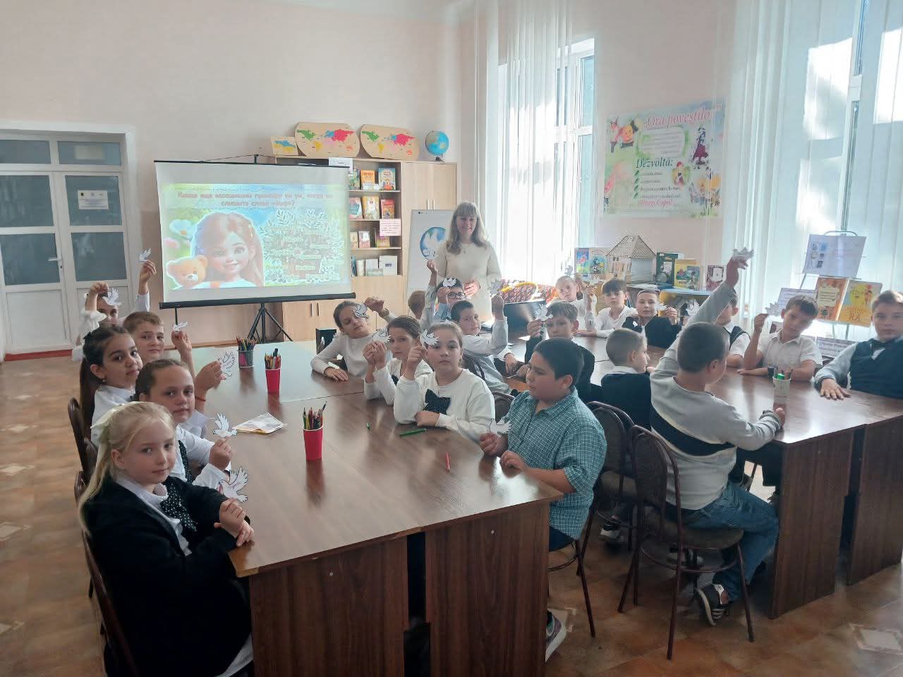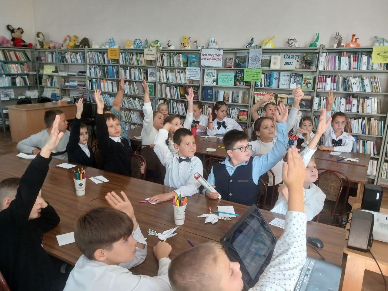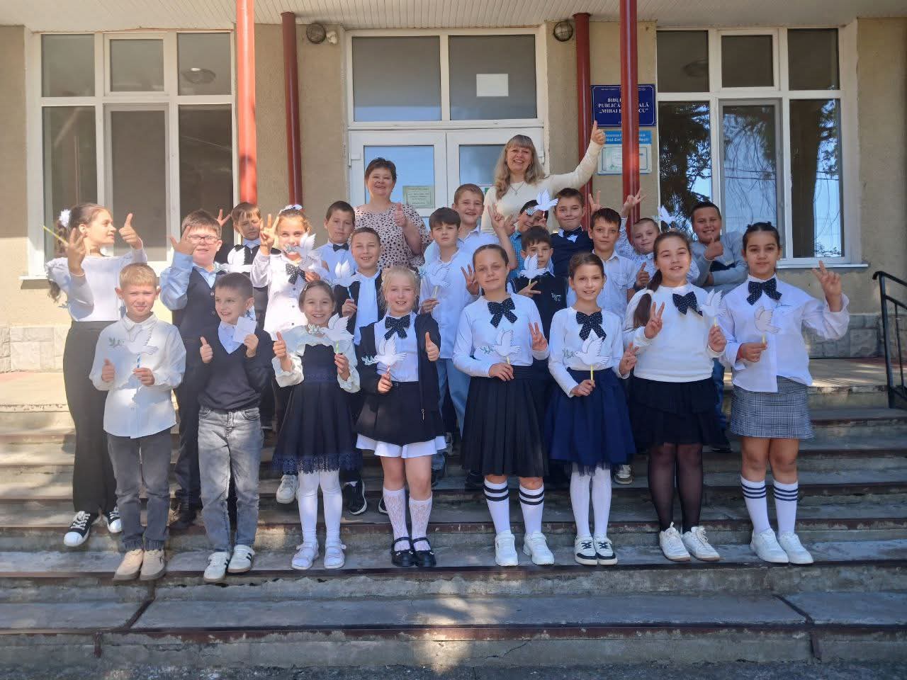 Во вторник удача улыбнулась ученикам 4-Б класса, которым выпала радость принять участие в мероприятии Biblioteca Publică Raională „Mihai Eminescu" Făleşti под символичным названием «Мы выбираем мир».